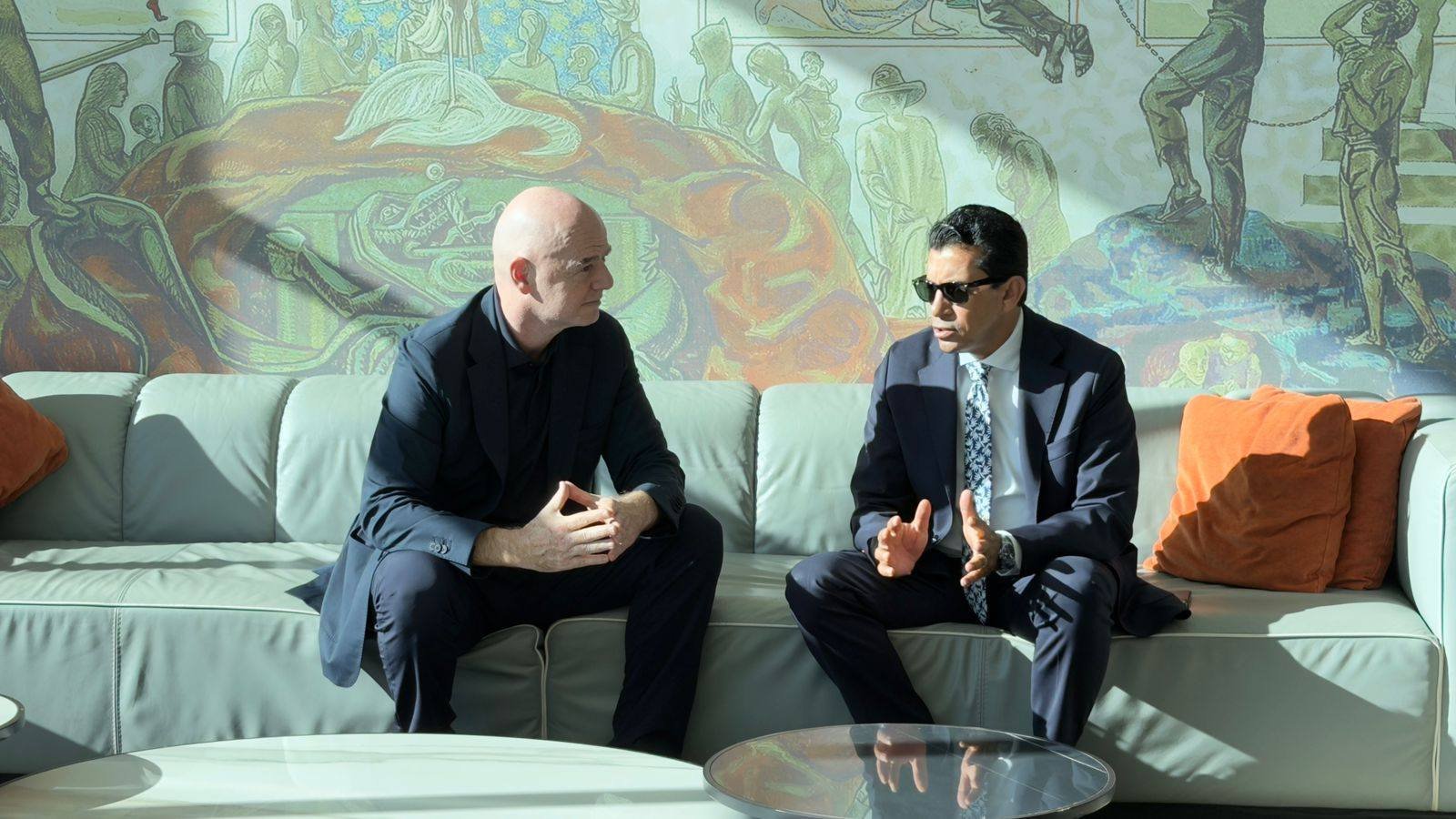 وخلال اللقاء رحب وزير الشباب والرياضة برئيس الفيفا في مصر مؤكدا على عمق التعاون القائم بين وزارة الشباب والرياضة والاتحاد الدولي لكرة القدم ودور الفيفا في دعم خطط تطوير كرة القدم المصرية والنهوض بالمنظومة الكروية على المستويين الفنى والإدارى