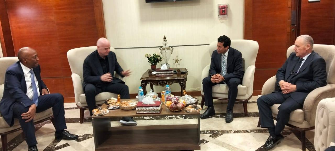 وكان في استقبال إنفانتينو أيضا كل من الدكتور باتريس موتسيبي رئيس الاتحاد الإفريقي لكرة القدم والمهندس هاني أبو ريدة، رئيس الاتحاد المصري لكرة القدم